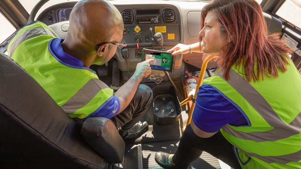 Seven First Student sites are rolling out new in-vehicle tablet software that is designed to connect various parts of their operations, such as routes, drivers, vehicle tracking, GPS, and payroll.