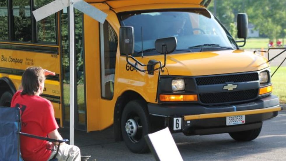David Mansfield of Minnesota, Billy Wiseman of West Virginia, and Hannah Beard of Missouri place first in the competition’s three school bus categories.