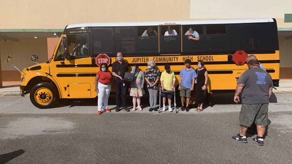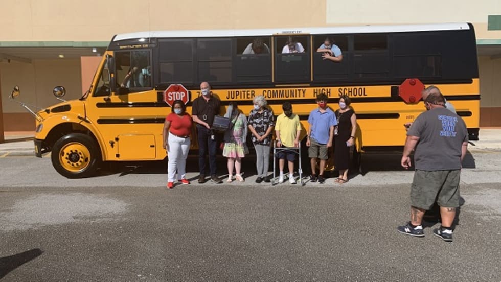 The students from The School District of Palm Beach County receive a new school bus after getting monetary donations from their community, totaling to $107,000.