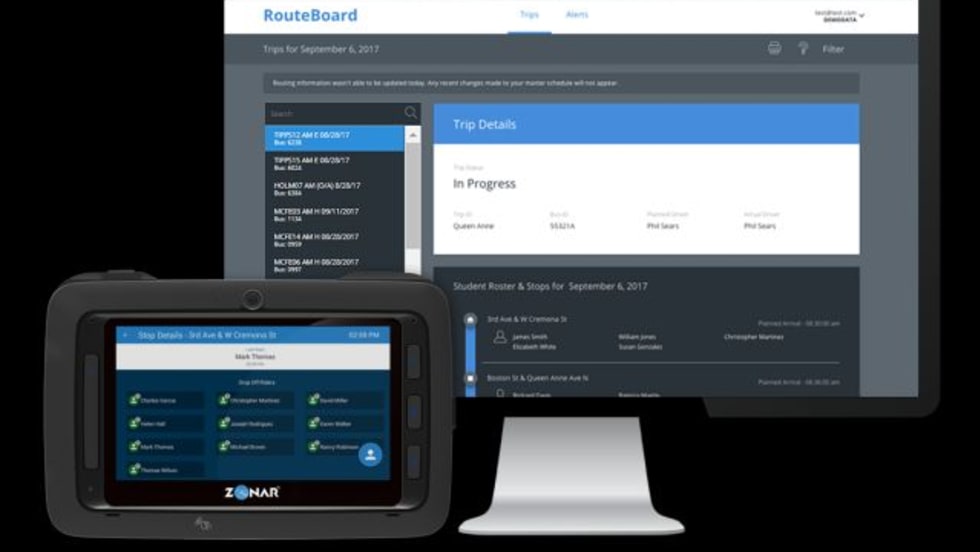 Zonar Verify provides daily routing and student rider information directly to the school bus driver.