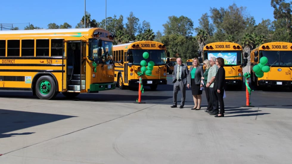 The Blue Bird vehicles are the first electric buses for Escondido Union High School District.