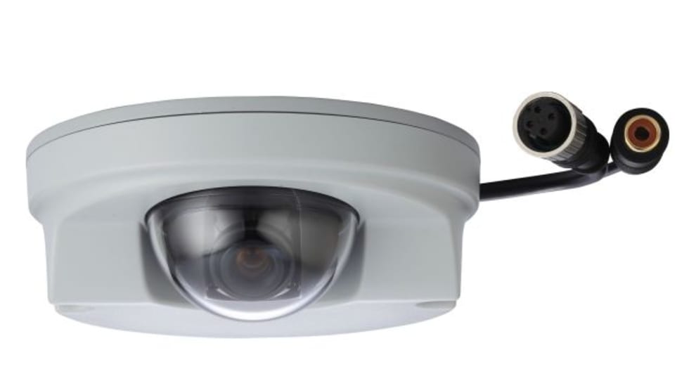 The VPort P06-1MP-M12 IP surveillance camera features a wide -40 to 75 C operating temperature, vibration-resistant M12 connectors, EN 62262 IK8 vandal-resistant design, audio input, PoE power input, and IP66 rain and dust protection.