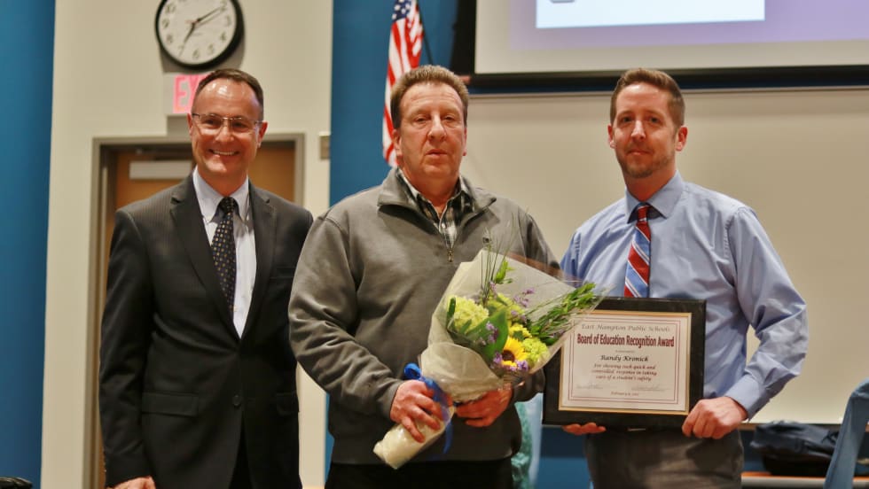 Randy Kronick of Connecticut prevents the 9-year-old girl from crossing the street as he sees a speeding SUV run his stop arm.
