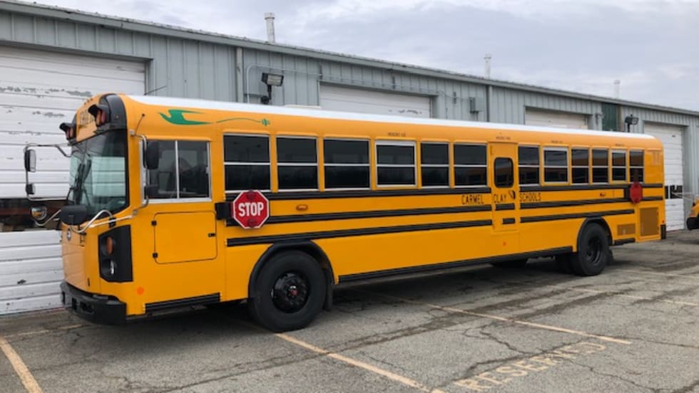 Carmel Clay Schools adds the bus to its fleet as part of a pilot and an overall initiative to move to alternative-fuel buses.