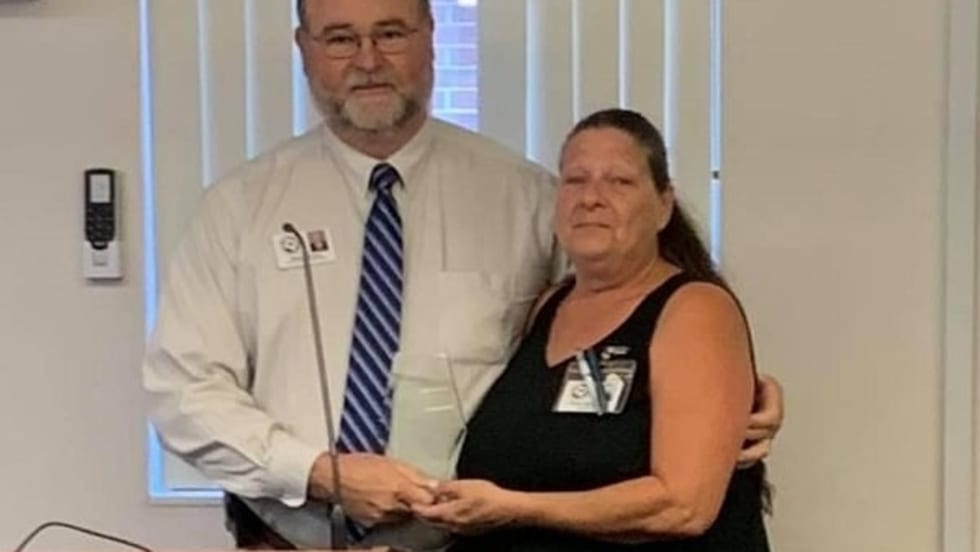Tanya Rivenburg, a four-year bus driver for Levy County School District, performs CPR on the student who was choking on a piece of candy.
