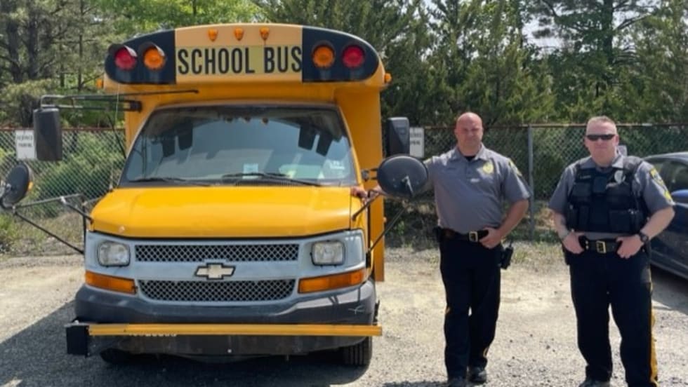 The student transportation provider gave a mini school bus to the Little Egg Harbor Police Junior Recruits.
