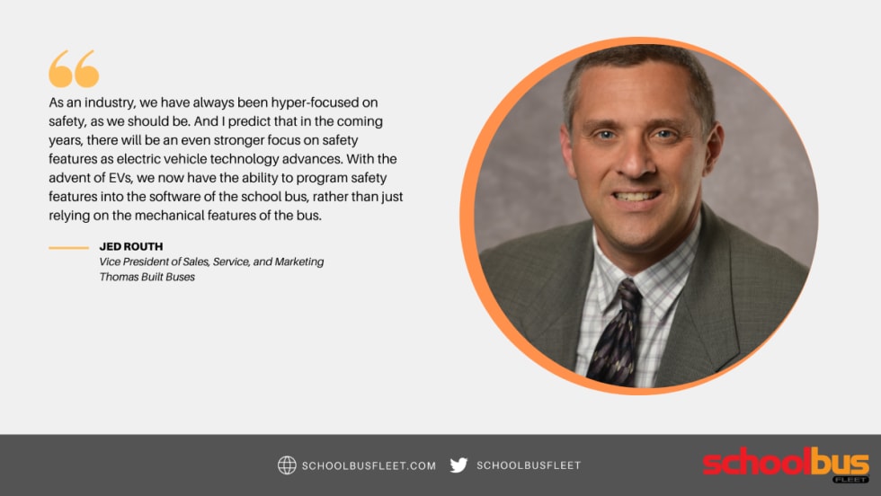 The vice president of sales, service, and marketing looks forward to more safety features in school bus software, not just in the mechanical components.