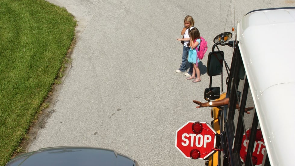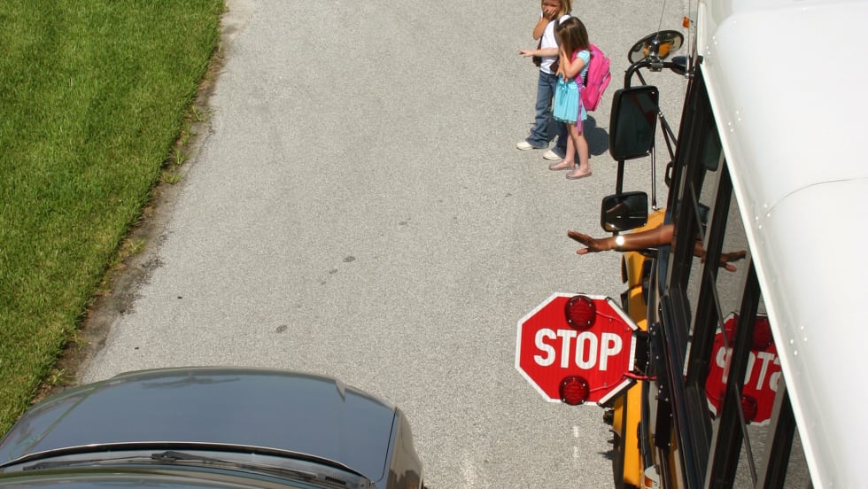 School bus drivers must learn how to judge other traffic and blend their stop arms into the traffic flow.