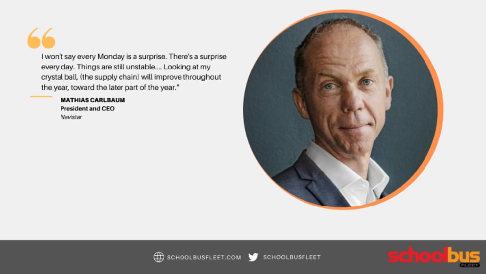 In a media roundtable, the president and CEO of Navistar said the yellow bus would lead the way in the company's evolution to 100% zero-emission vehicle production by 2040.