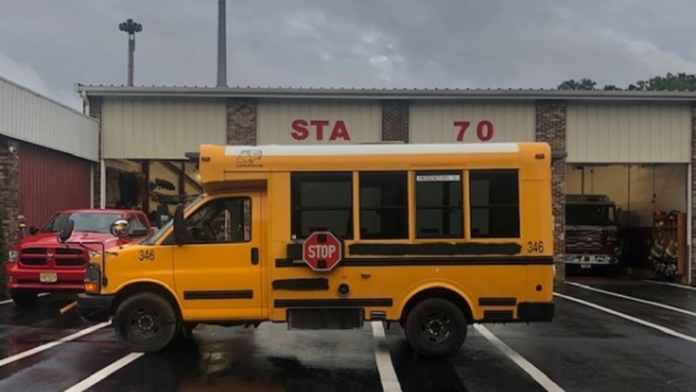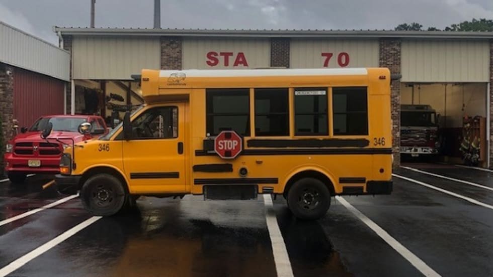 The school bus company gives one of its buses to Parkertown Volunteer Fire Company to help transport equipment during emergencies.