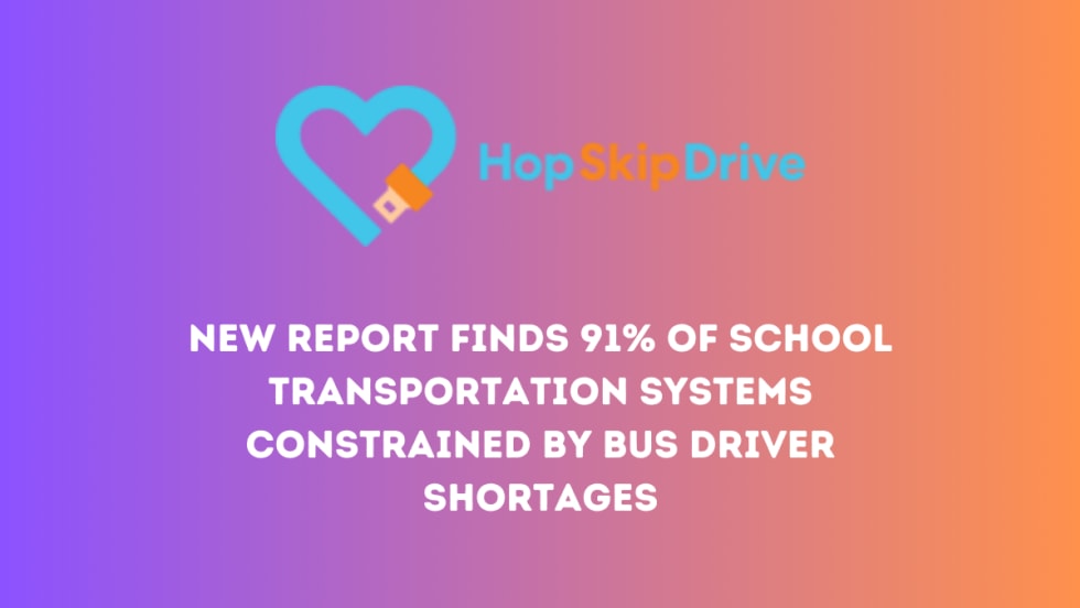 New HopSkipDrive report finds 91% of school transportation systems constrained by bus driver shortages.