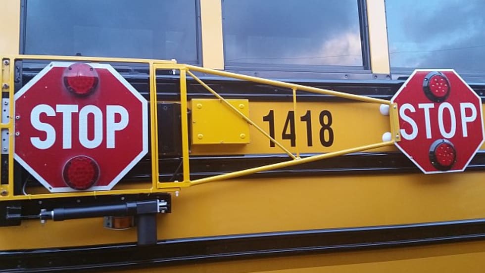Kanawha County Schools is testing an electric-powered extended stop arm that may become a more consistent upgrade to the current air-powered version it uses on 10 of its buses.