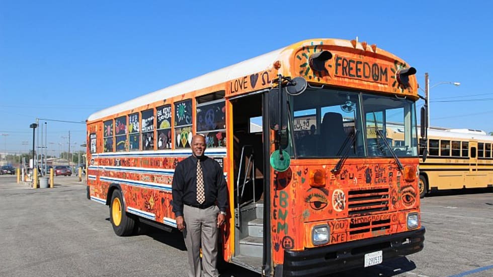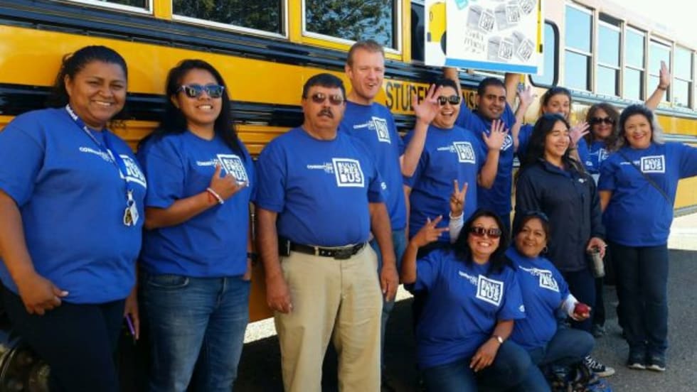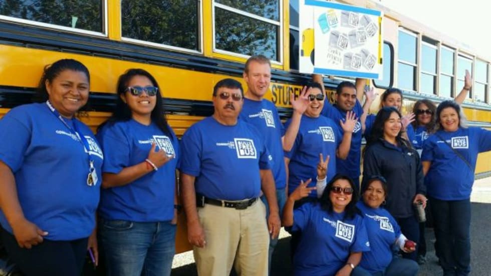 Colton (Calif.) Joint Unified School District students decorate a school bus with slogans and pictures depicting kindness, and district team members ride the bus to various sites to spread the message.