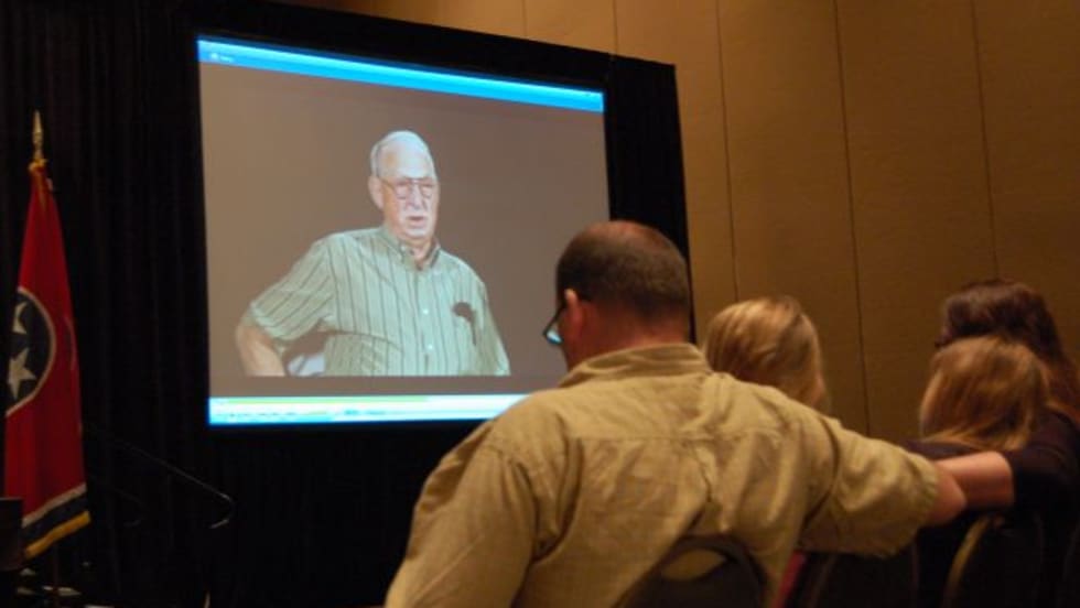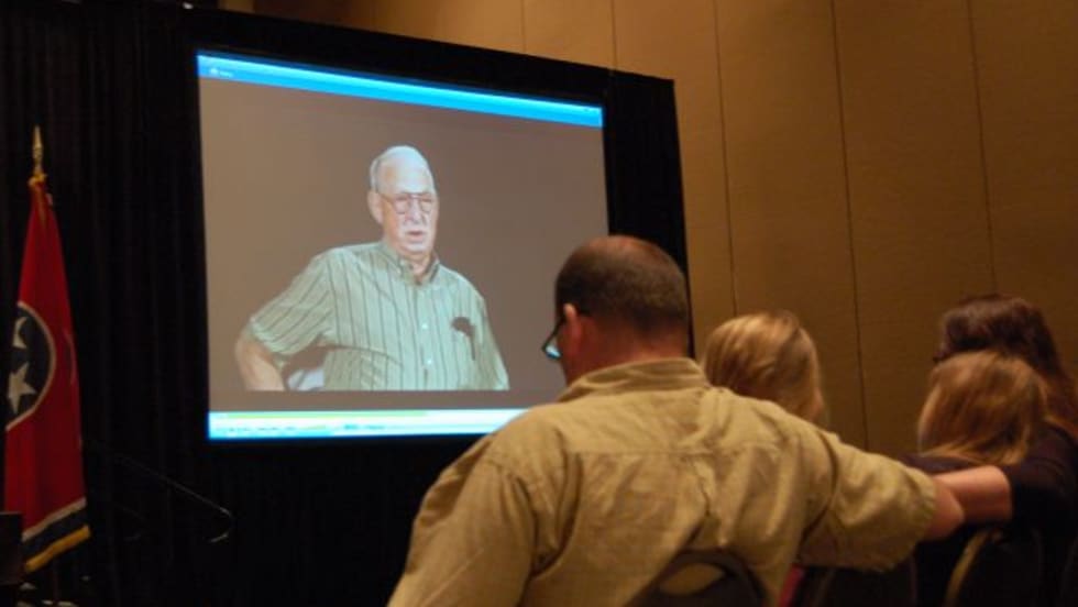 Keynote speakers at the NAPT Summit share some powerful safety messages — powerful in particular because they are based on fatal school bus accidents. The family of Hunter Pitt, who was killed when his bus ran over him, watches a video they worked on with Missouri organizations.