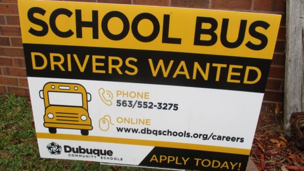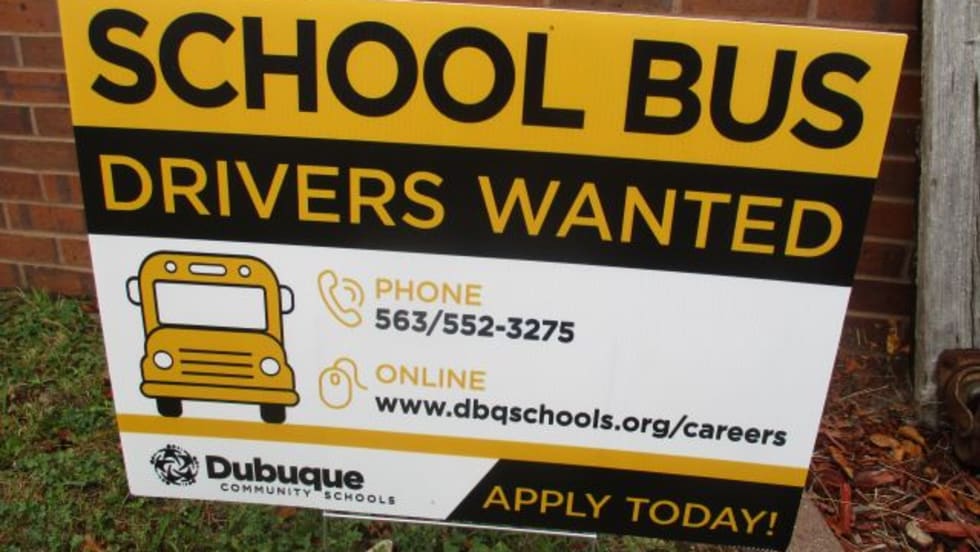 Dubuque Community Schools orders 100 “drivers wanted” signs and posts them at schools and around town.