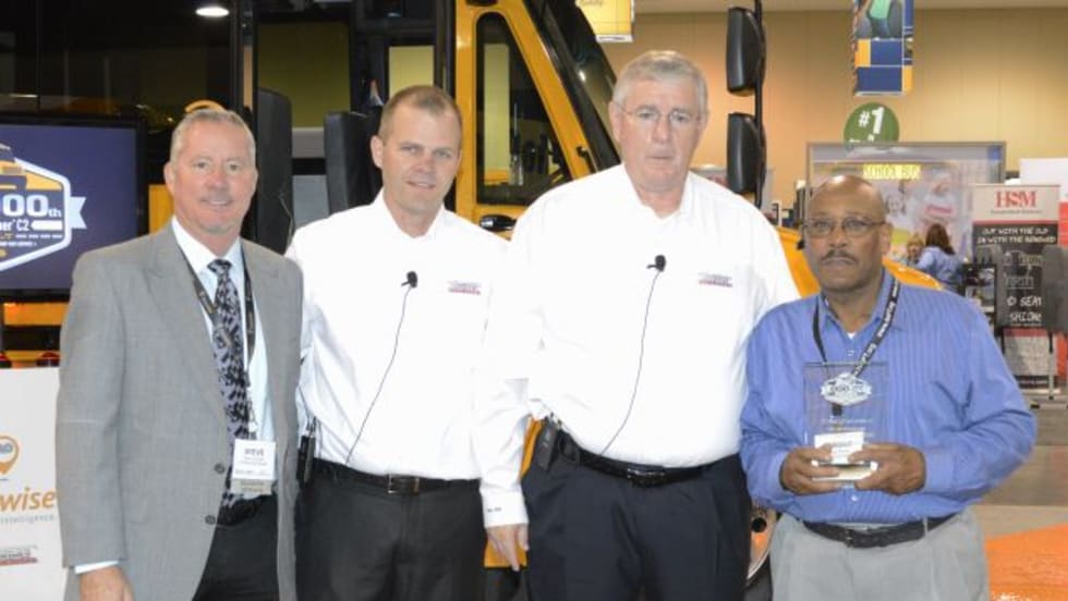 The landmark Saf-T-Liner C2 goes to Bishop Bus Service in Maryland. Thomas Built has another upcoming milestone: its 100th anniversary.