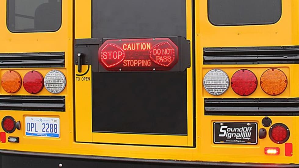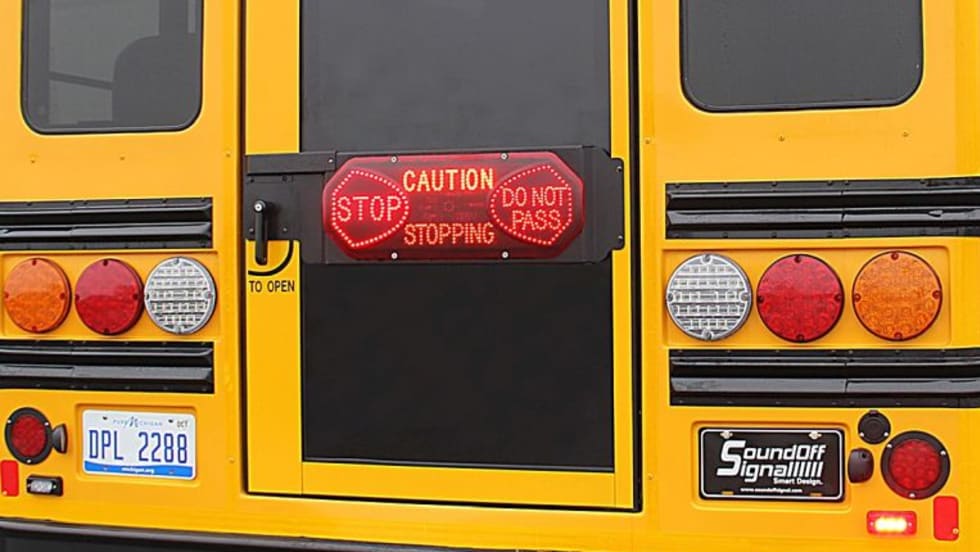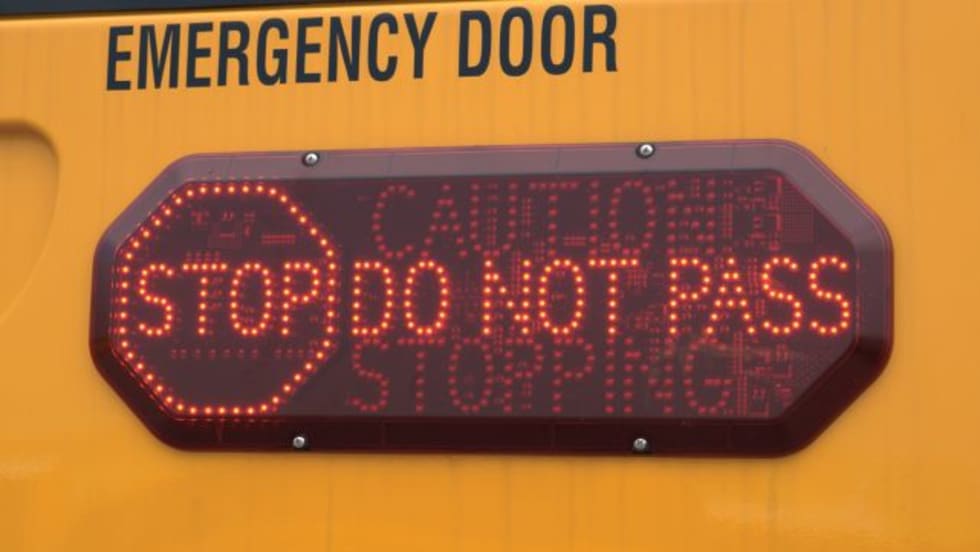 The newly passed legislation allows school buses to be equipped with an electronic sign that alerts other drivers when the bus stops.