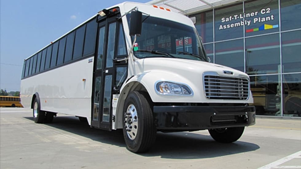 The manufacturer introduces a new version of its Saf-T-Liner C2 bus design that officials say is well suited for long distance commuting, tour operators, city buses, university transit, shuttle buses, church groups and sports teams. The bus does not have school bus guard rails, and it features panoramic, solid pane windows and optional coach-style recliner seating.