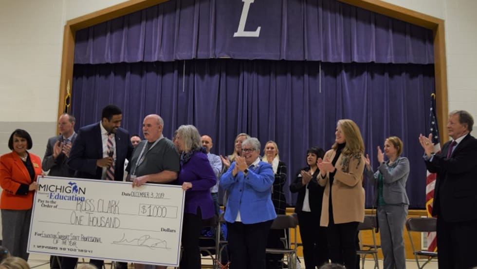 Russ Clark, a driver for Rockford Public Schools, is named 2019 Education Support Staff Professional of the Year by the Michigan Department of Education.