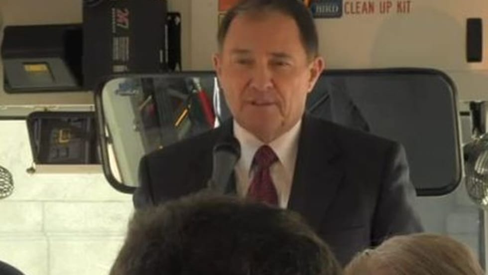 Senate Bill 275 would establish a governing body to facilitate conversion of fleets in the state to alternative fuel vehicles, specifically those powered by compressed natural gas (CNG). In a press conference on board a CNG-powered school bus, Gov. Gary Herbert calls for everyone to improve the state’s air quality, and he spotlights the bill as one way to reduce heavy vehicle and fleet emissions.