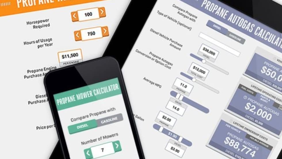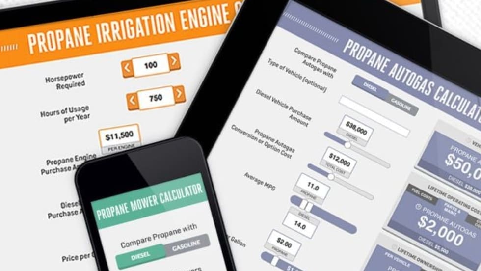 The Propane Education & Research Council’s calculator tools compare propane costs to those of conventional fuels like gasoline and diesel.