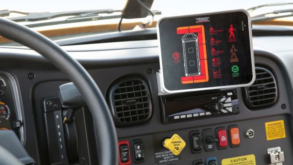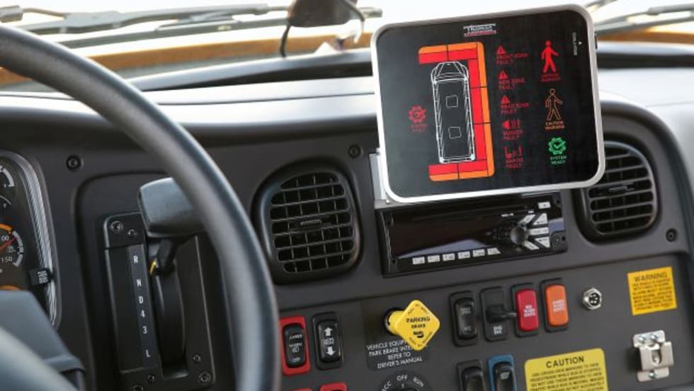 When a pedestrian is detected, the system will alert the driver on an in-cabin tablet as well as through caution lights on the cross-view mirrors.