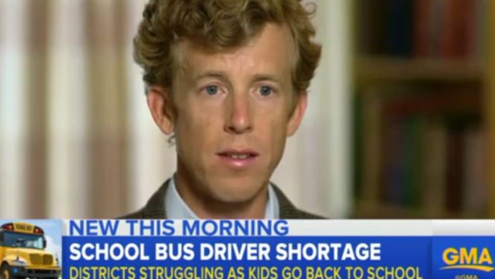 The news program cites School Bus Fleet data on driver shortage and interviews Thomas McMahon on the topic.
