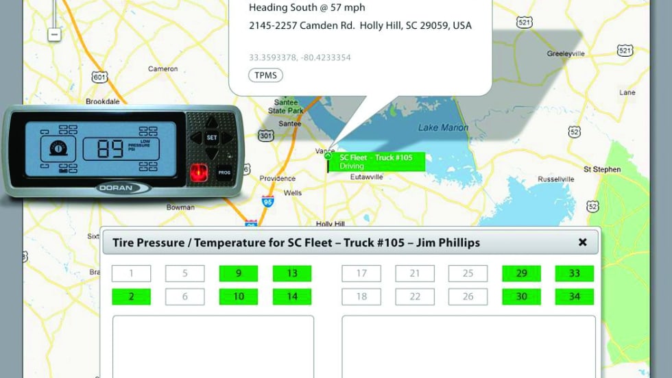 Doran’s tire pressure monitoring system and Safety Vision’s SafetyTrax AVL have been integrated to create a web-based software application that provides real-time updates for global position and vehicle tracking indicators, along with tire pressures and temperatures for fleet vehicles.