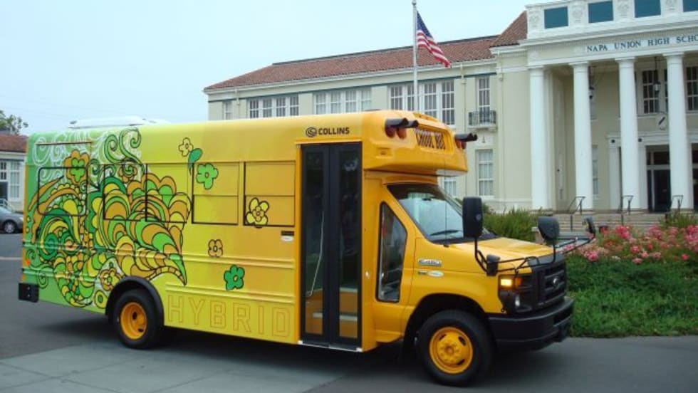 Ralph Knight, transportation director for Napa (Calif.) Valley Unified School District, receives the Alternative Fuel Vehicle Institute’s Magic School Bus Award for implementing alternative-fuel use at his operation. The district was the first in the nation to receive Collins' Type A hybrid-electric school bus.