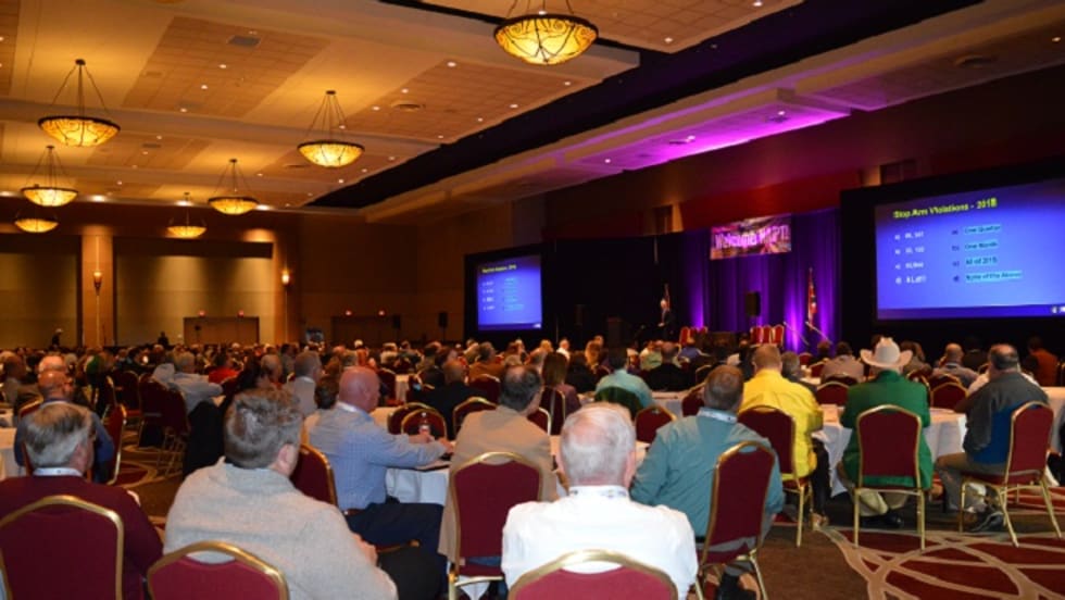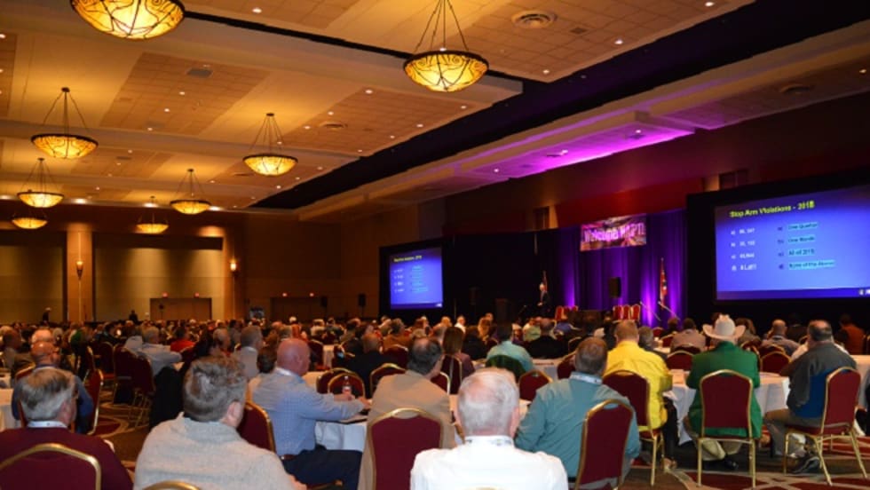 Several transportation and safety representatives discuss with attendees the issue of illegal school bus passing and the importance of route planning and prevention with new technologies and practices.