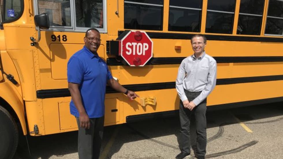 Hopkins (Minn.) Public Schools is testing Safe Fleet’s Predictive Stop-Arm. It uses radar technology and predictive analytics to notify bus drivers and students when risk is detected outside the bus.