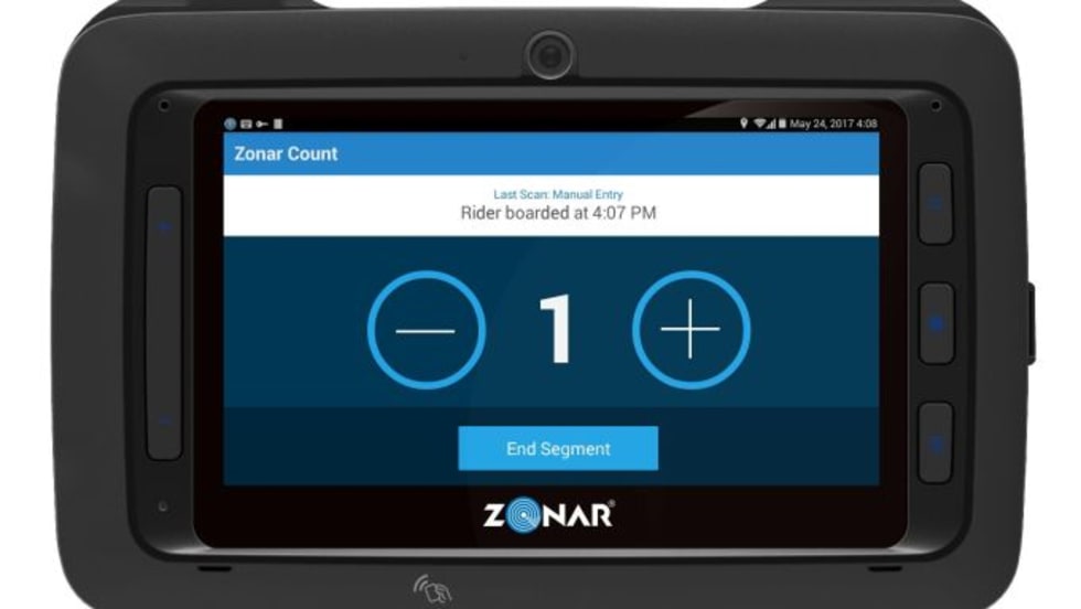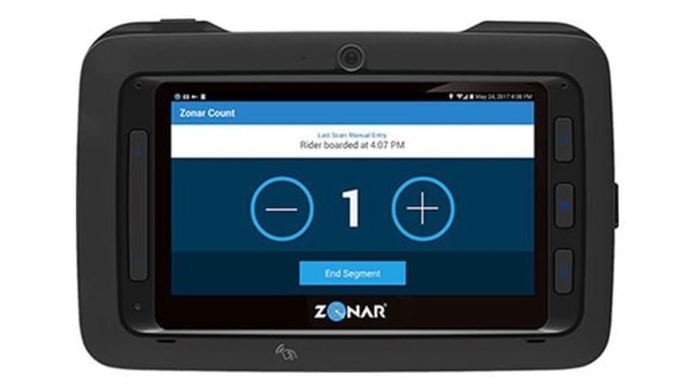Zonar Count is designed for Zonar tablets to accurately count passengers who get on and off a vehicle while tracking average travel time, average passenger trip length, and operating costs per passenger trip.