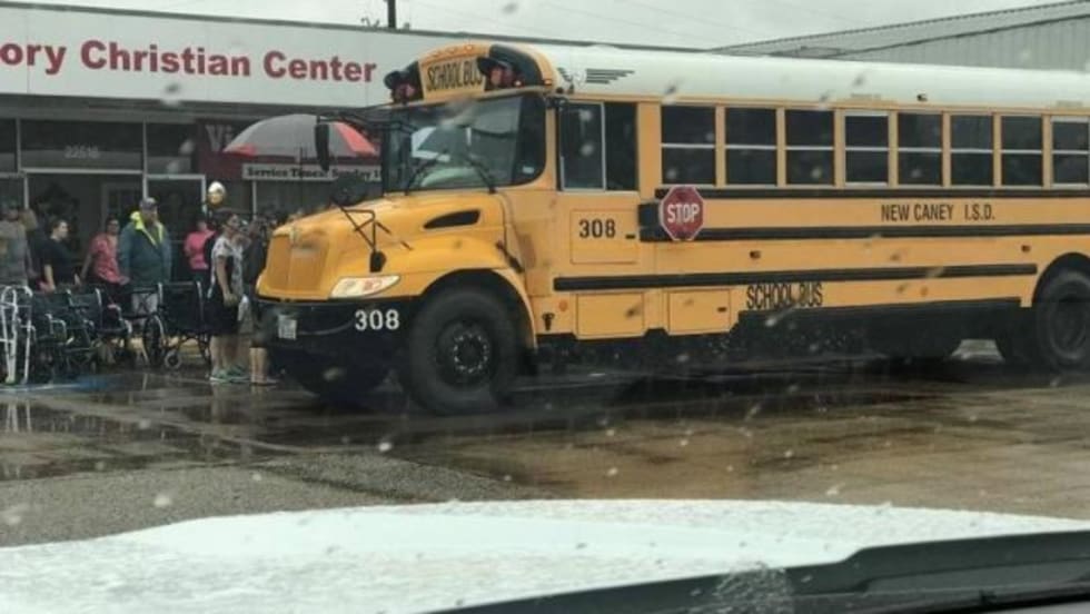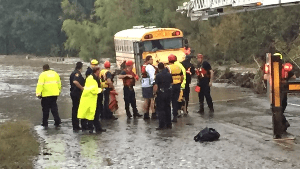 Four special-needs students and two adults were rescued from a bus caught in floodwaters caused by a severe storm in Texas. Meanwhile, three students and two adults were rescued from another flooded bus in the area, and no injuries were reported.