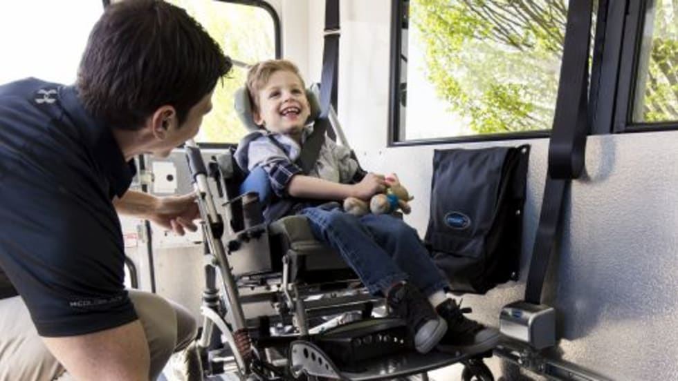 Collins marks its 50th anniversary with a new vehicle that enables students in wheelchairs to bring themselves aboard.