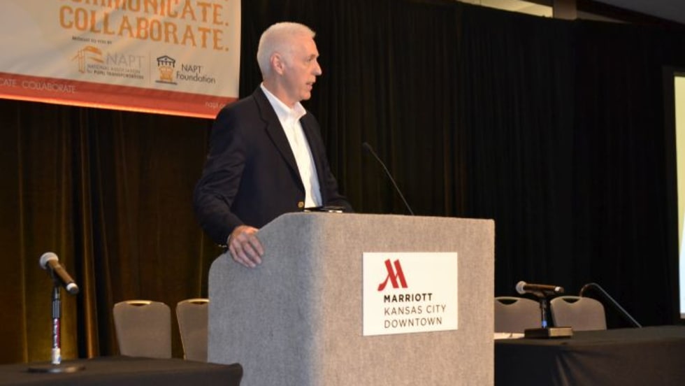 A Colorado transportation director discusses with attendees the key leadership skills for keeping drivers on board.