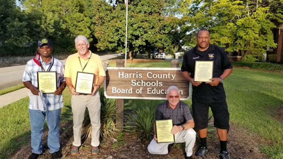 Four Muscogee County School District drivers are praised by the Harris County School District’s board of education for helping transport students during a driver shortage.