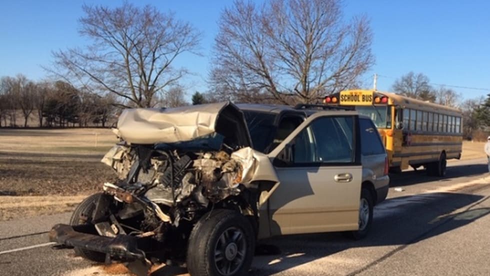 A school bus is carrying 20 students from Union-North United School Corp. when a motorist crashes into the rear end of the bus. Four students on board and the motorist suffer minor injuries.