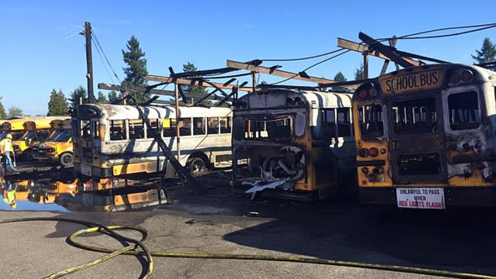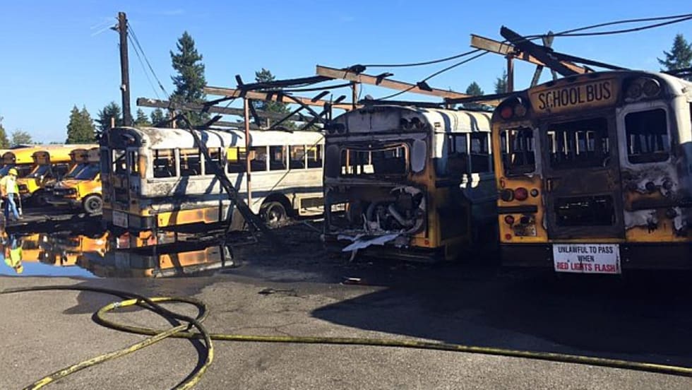 A fire at Puyallup (Wash.) School District's bus facility damages more than 28 new school buses. Nearly 70 employees are evacuated, and no one is injured.