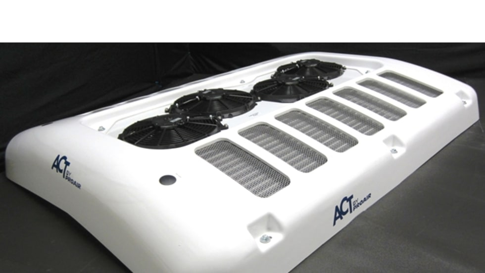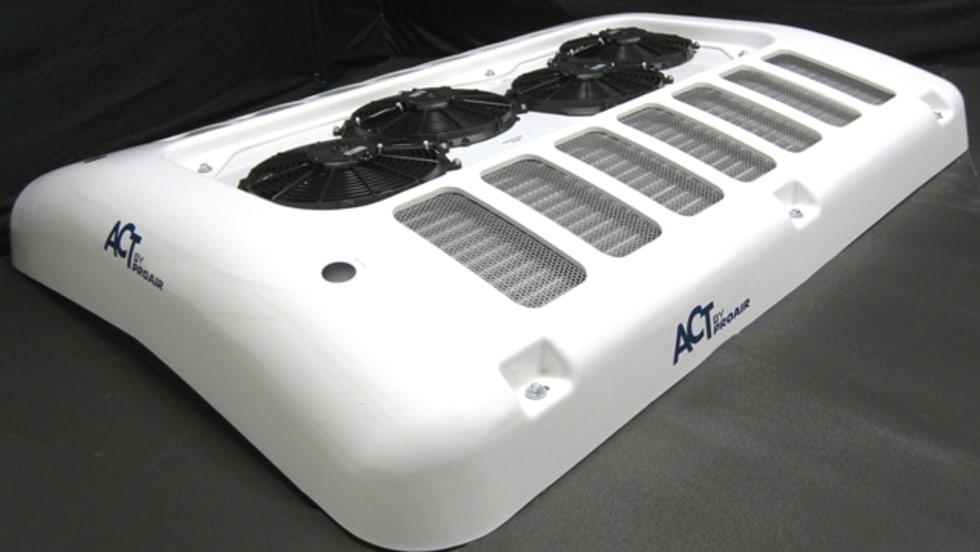 At less than 10 inches tall, American Cooling Technology's CR-4 bus air-conditioning condenser unit increases roof clearance and eliminates the need to install a branch guard.