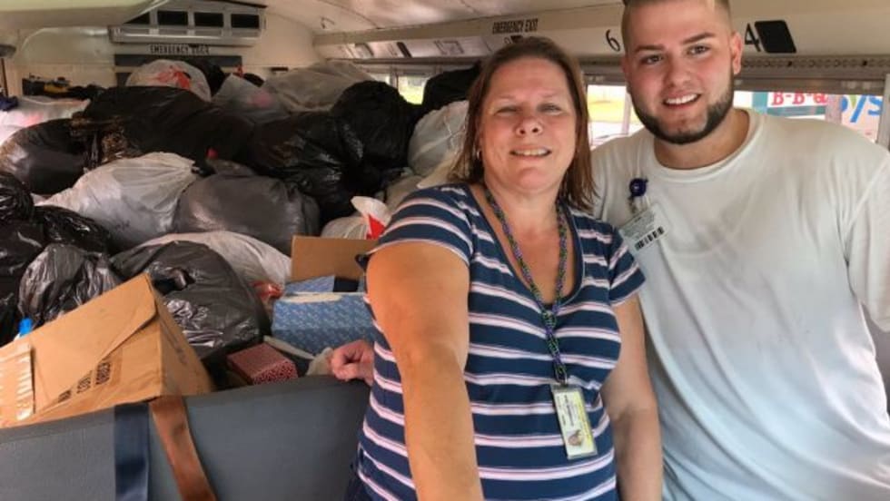 In southeastern Texas, school bus drivers and staff help move evacuees to shelters amid the devastating storm and floodwaters.