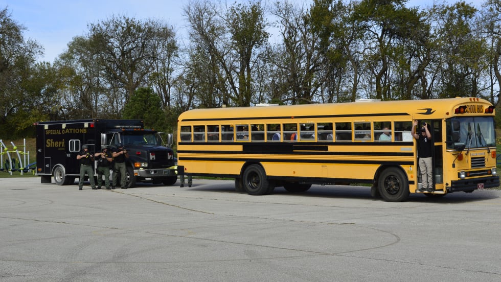 Group and panel discussions as well as live enactments performed by local law enforcement using school buses at the NAPT Summit help attendees prepare for violent incidents.