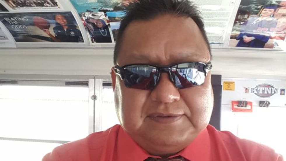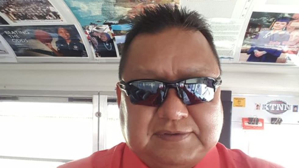 Freddie Yazzie, a longtime driver on a Navajo reservation in Arizona, has lined the ceiling of his bus with posters that highlight the feats of former riders.