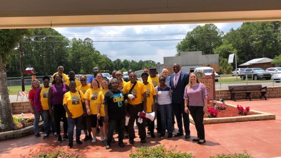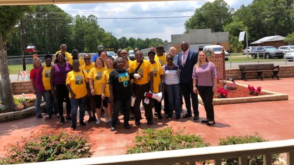 More than 20 of Hamilton County (Fla.) School District’s transportation staff visit local nursing home residents after waving at them all school year as they headed out on their routes.