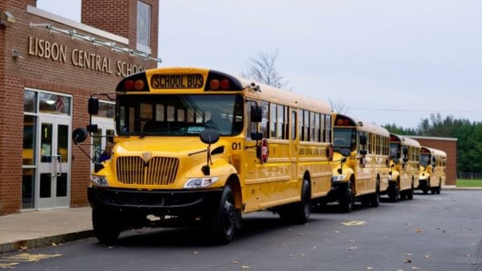 Lisbon Central School District’s new buses, which are part of an initiative to transition the district to a fleet run entirely in-house, are equipped with electronic stability control and collision mitigation technology.