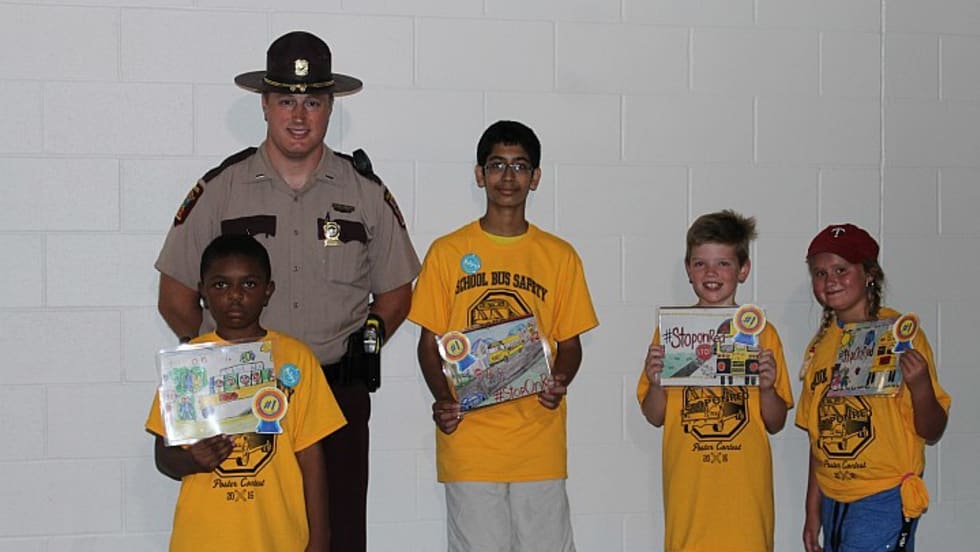 The Minnesota Association for Pupil Transportation and Minnesota School Bus Operators Association recognize students who won the state contest at Target Field before a Minnesota Twins baseball game.