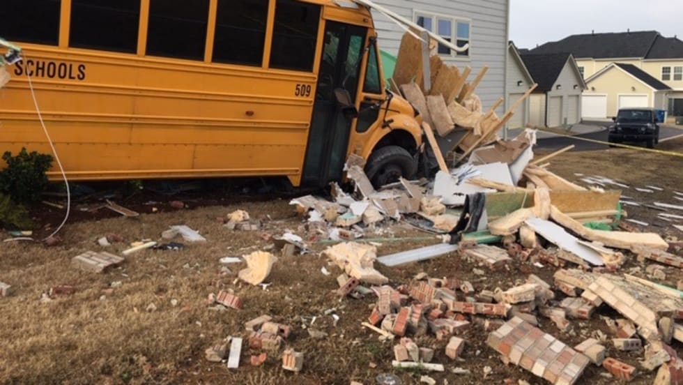 The North Carolina driver is cited for failing to maintain lane control after her bus hits a stopped car, causing the bus to veer off the road and hit the building.