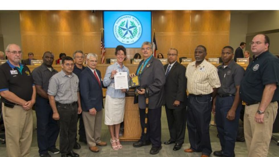 The Employer Support of the Guard and Reserve organization, a U.S. Department of Defense office, presents an award to Houston Independent School District for its efforts to recruit and retain military personnel.