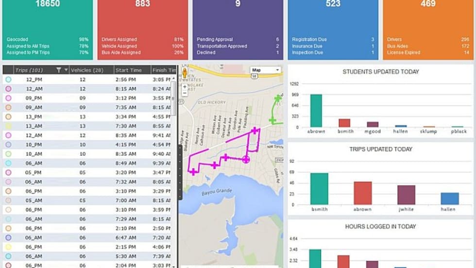 The company demonstrates Viewfinder, which can monitor day-to-day operations, providing access to updates on trips, vehicles, students and staff from any device.
