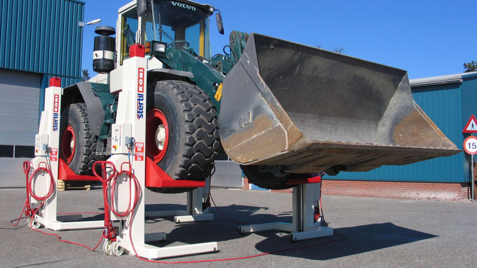 The ST 1065 mobile column lift is engineered for safely raising industrial, off-road vehicles with large wheel diameters.