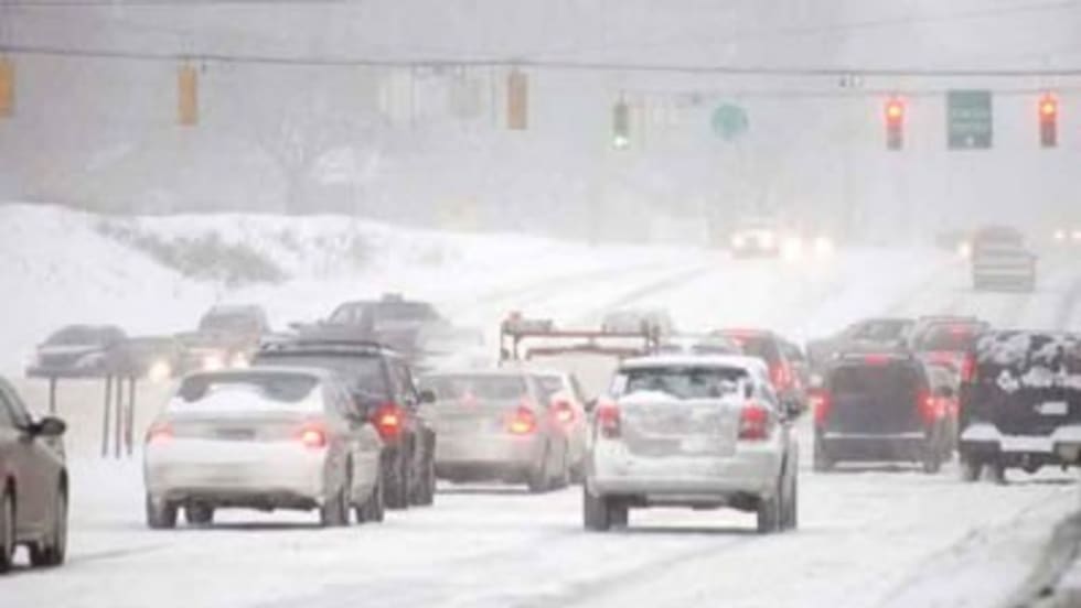 A sheet of ice that fell off of a tractor-trailer hits the bus. The driver successfully pulls the bus over. He and three students sustain injuries in the incident.